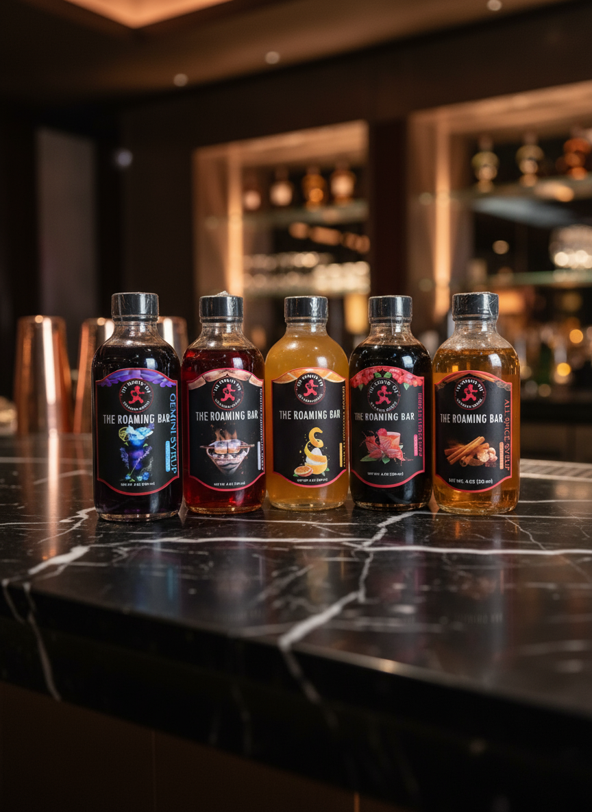 Whether you’re stirring a classic cocktail, elevating your morning latte, or gifting someone a taste of artistry, The Roaming Bar Syrups bring sophistication and soul to every pour.